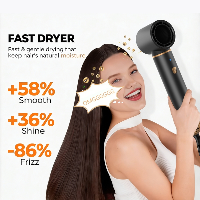 Powered by a high-performance motor, it delivers strong, consistent airflow to dry hair quickly without excessive heat. Cut down your daily styling time significantly, ideal for busy mornings and quick touch-ups.