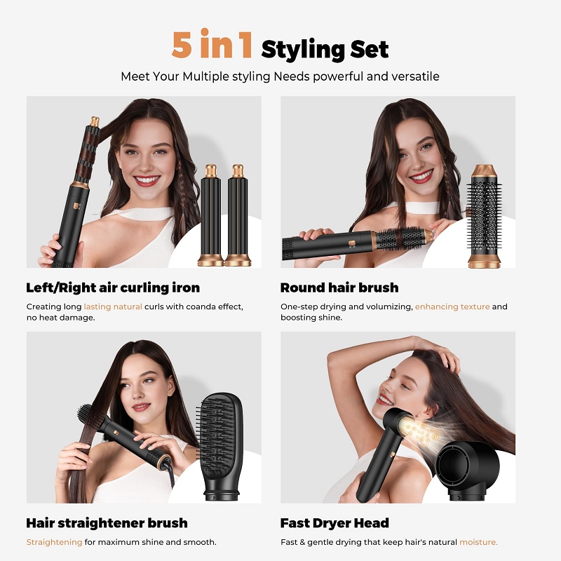 1.6-in-1 Multi-styler,Combines drying, straightening, curling, volumizing, and smoothing in one tool to replace multiple devices.