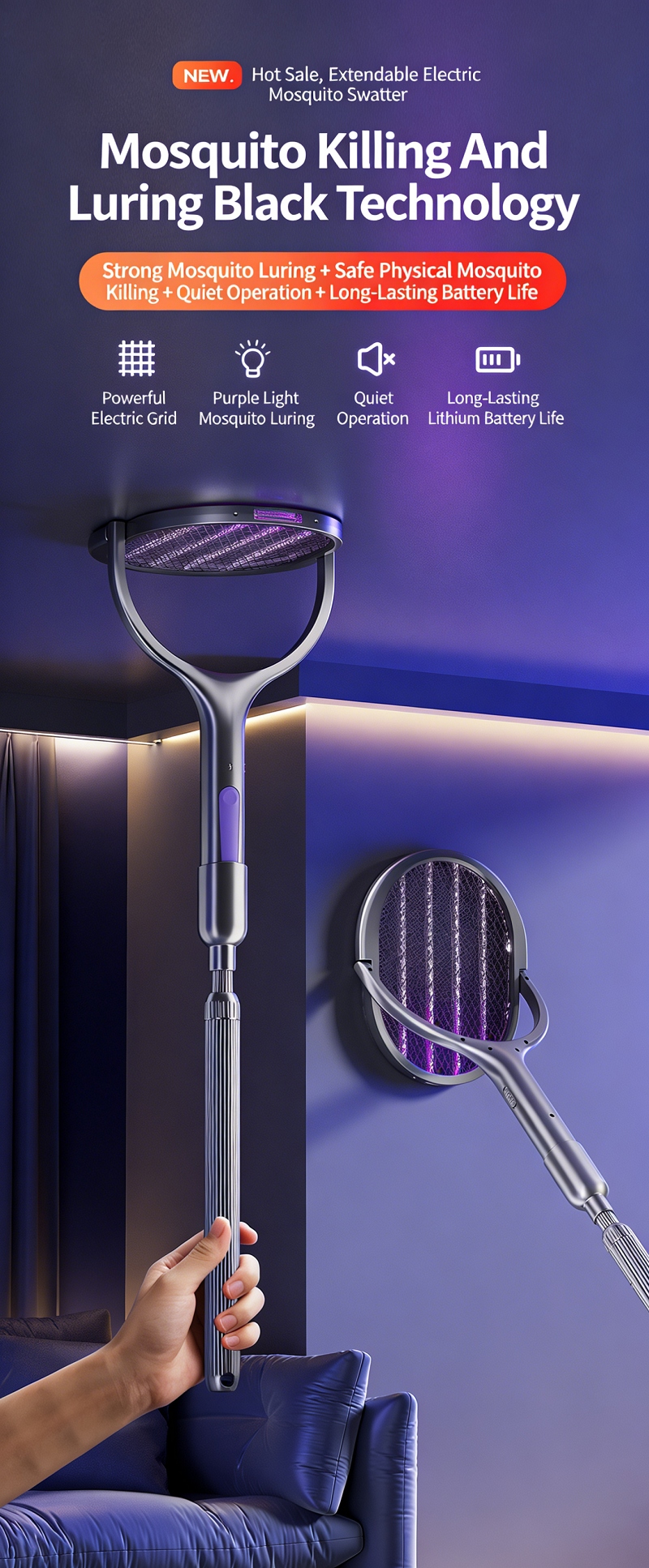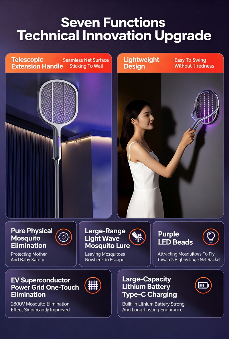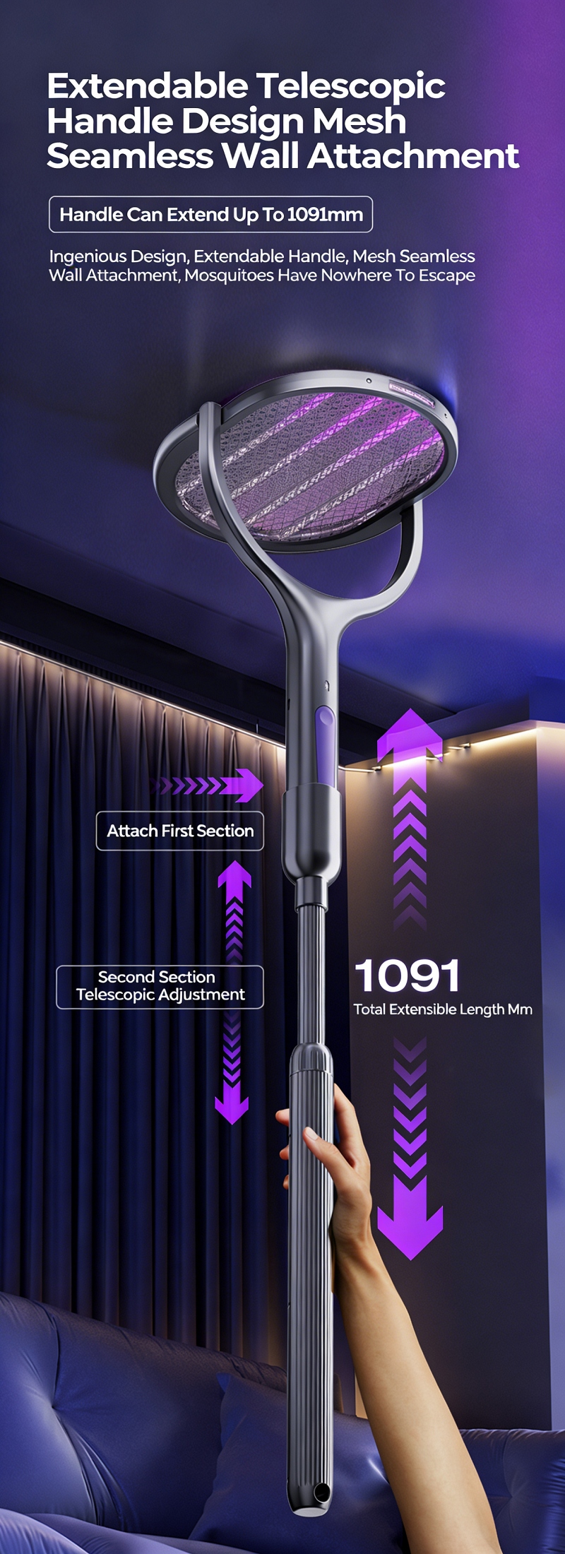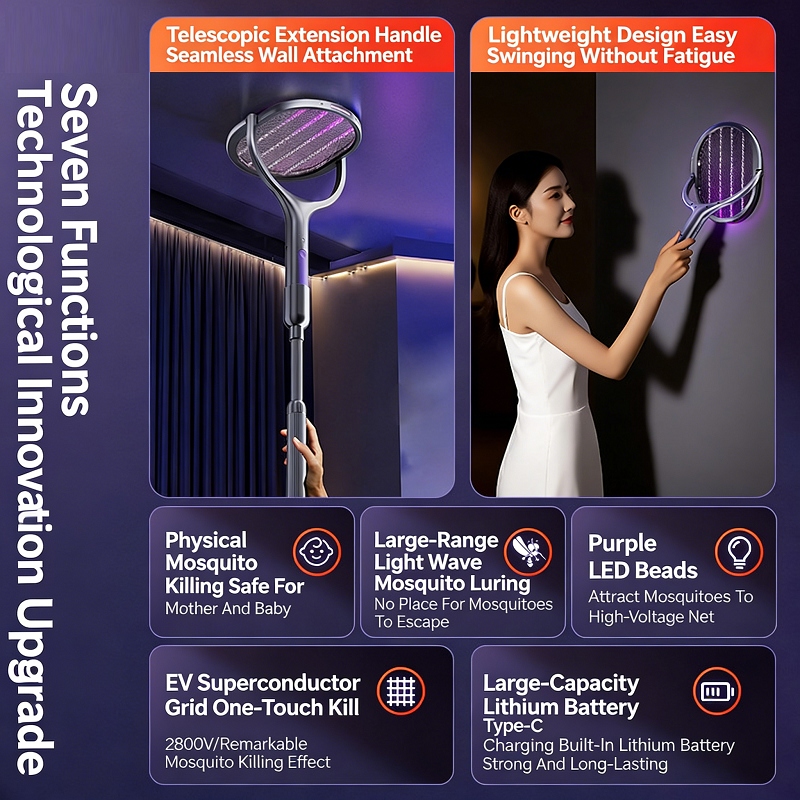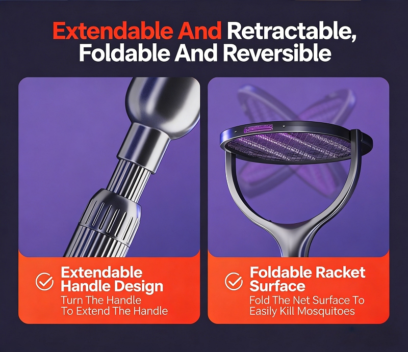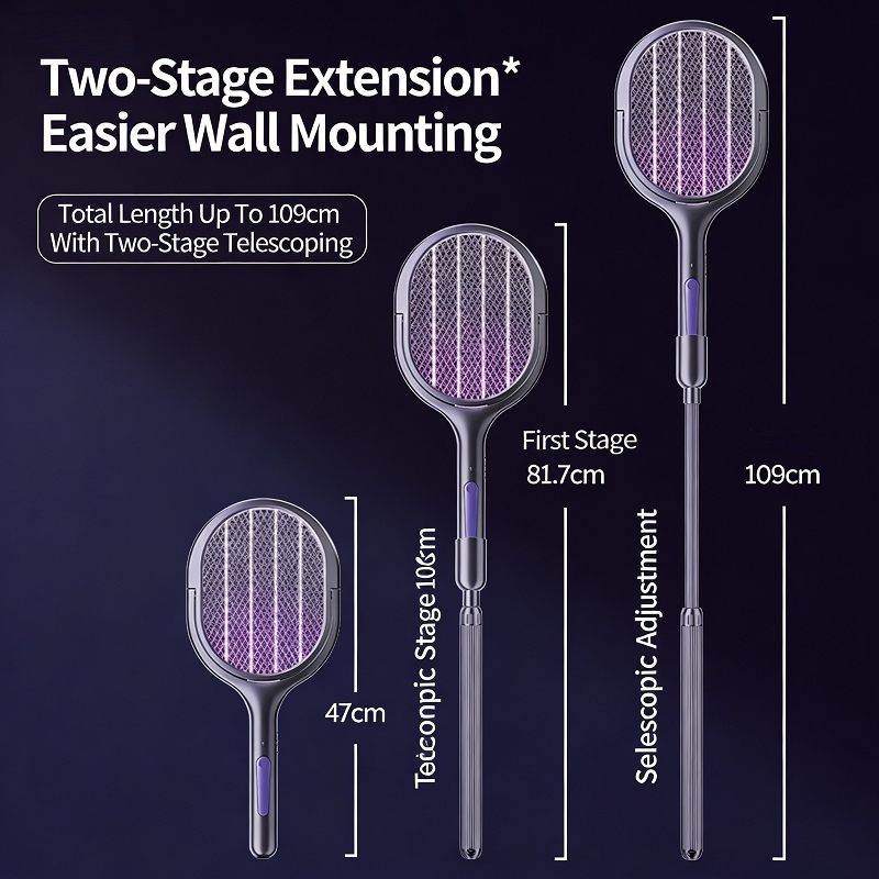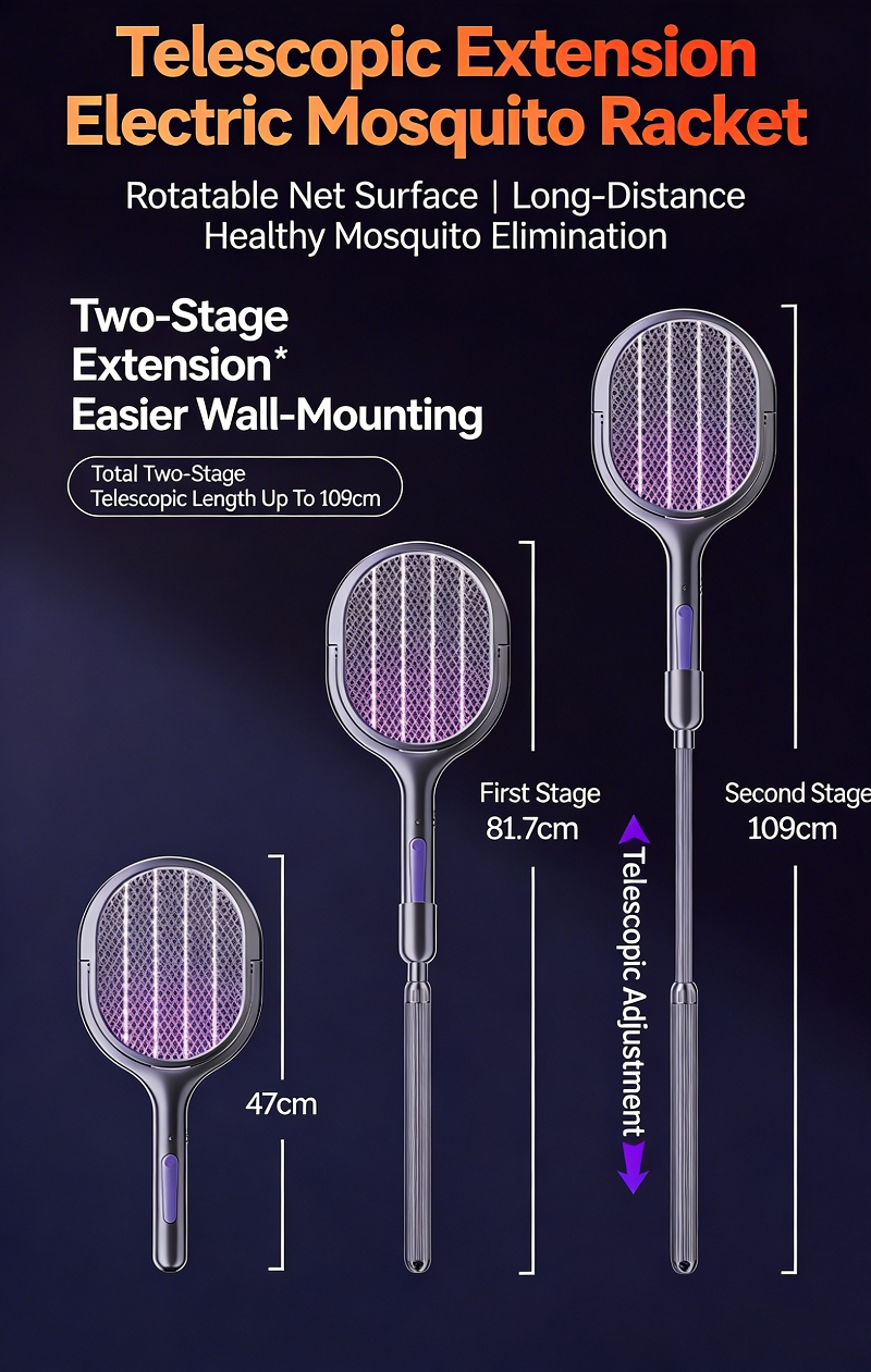 ✅ 1. 109cm Telescopic Handle & 360° Rotatable Head, No Dead Zones For Mosquito Killing
