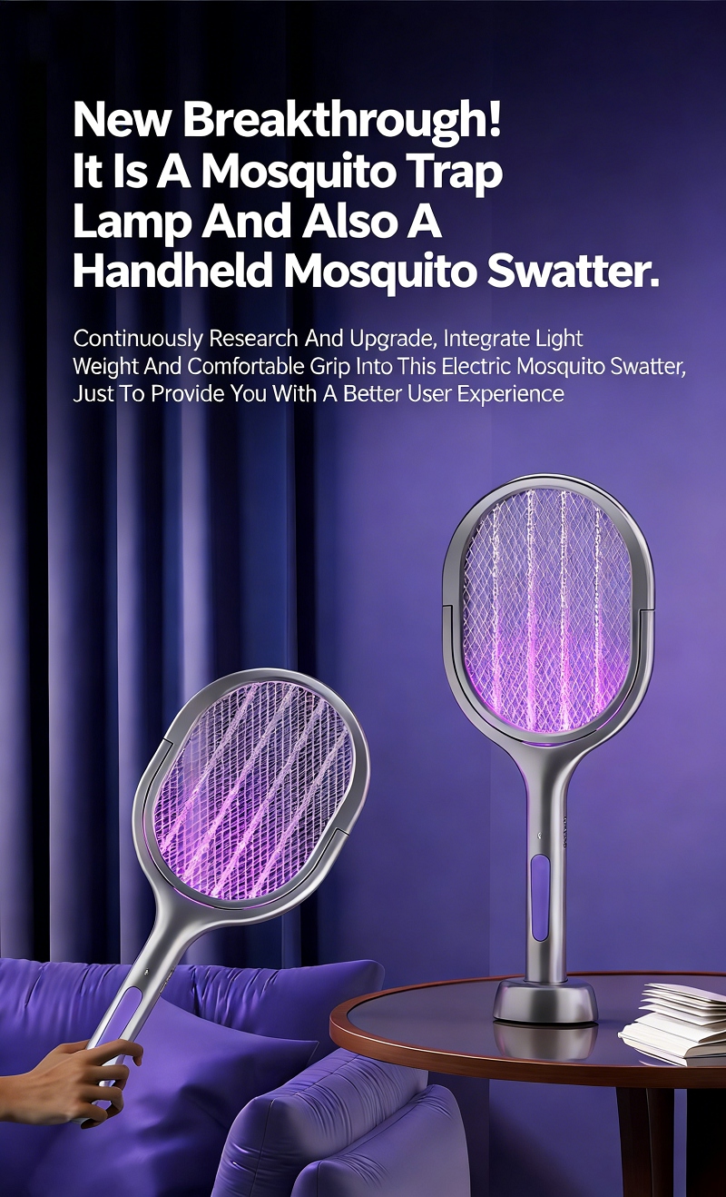 2. 2-In-1 Dual-Use Design, Handheld Swat + Stand-Up Mosquito Luring