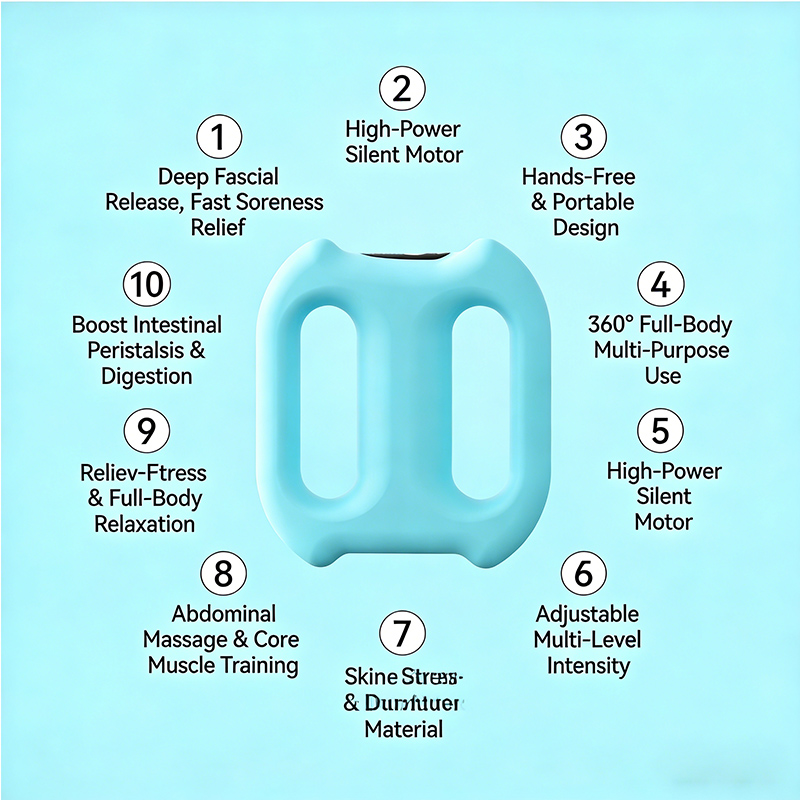 360° surround vibration accelerates local blood flow, relieves muscle stiffness, and helps tone body lines. Pair with daily workouts for better shaping results, perfect for waist trimming & limb slimming.